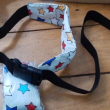 Our Baby Car Seat Head Support Band features an elastic band with a buckle and adjustable length strap. All you have to do is strap around your stroller or car seat where your little one’s forehead is so when he falls asleep, his head will stay upright.