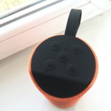 The exterior of the speaker is covered in cloth mesh that is wear- and water-resistant. A smooth plastic base adds support while the control pad is protected with smooth silicone.